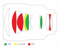 13枚のレンズのうち6枚の特殊レンズを最適に配置する新たな光学設計。3枚の低分散ガラス(ED)で色収差と色にじみの効率的な補正で高解像を実現。 さらに高屈折ガラス(HR)2枚と超精密非球面レンズ(UA)で、画面の中心から周辺部まで一層鮮やかなシャープネスとコントラストを維持。さらに非球面レンズ表面を超精密研磨されたUA(Ultra-precision Aspherical)レンズを採用し、自然なボケ描写が楽しめます。