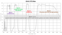 光害の多い可視域(波長400〜700nm)では光害に強いネビュラブースターの特性にプラスし彗星のイオンテイルに対応したバンドを設け